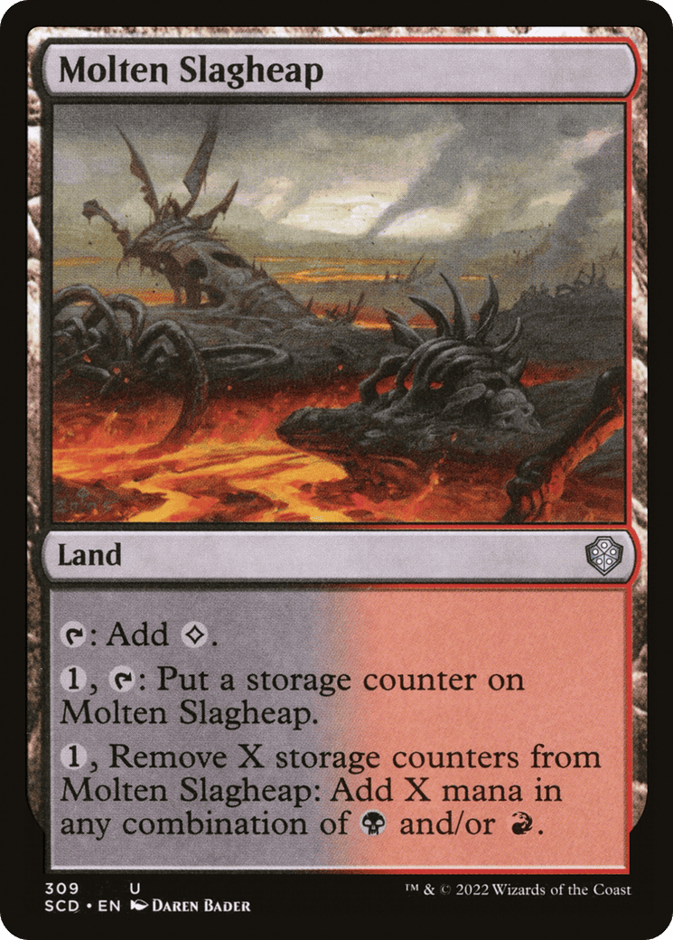 {T}: Add {C}. {1}, {T}: Put a storage counter on this land. {1}, Remove X storage counters from this land: Add X mana in any combination of {B} and/or {R}.