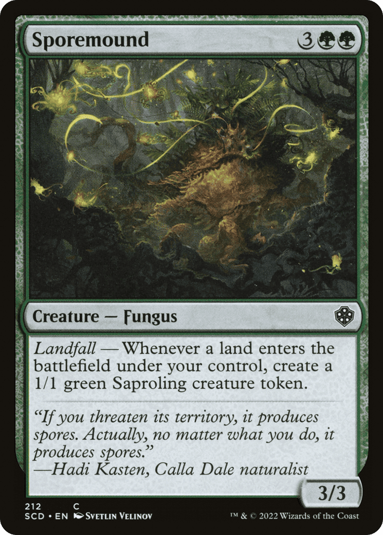 Landfall – Whenever a land you control enters, create a 1/1 green Saproling creature token.