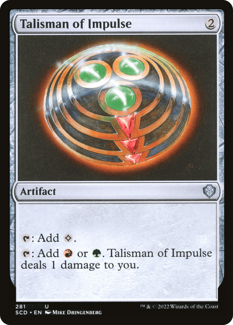 {T}: Add {C}. {T}: Add {R} or {G}. This artifact deals 1 damage to you.