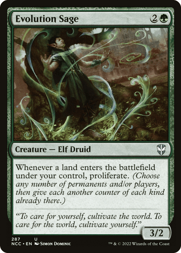 Landfall – Whenever a land you control enters, proliferate. (Choose any number of permanents and/or players, then give each another counter of each kind already there.)