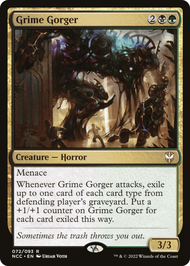 Whenever this creature attacks, exile up to one card of each card type from defending player’s graveyard. Put a +1/+1 counter on this creature for each card exiled this way.