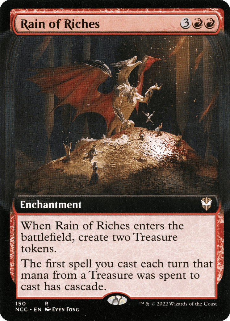 The first spell you cast each turn that mana from a Treasure was spent to cast has cascade. (When you cast the spell, exile cards from the top of your library until you exile a nonland card that co