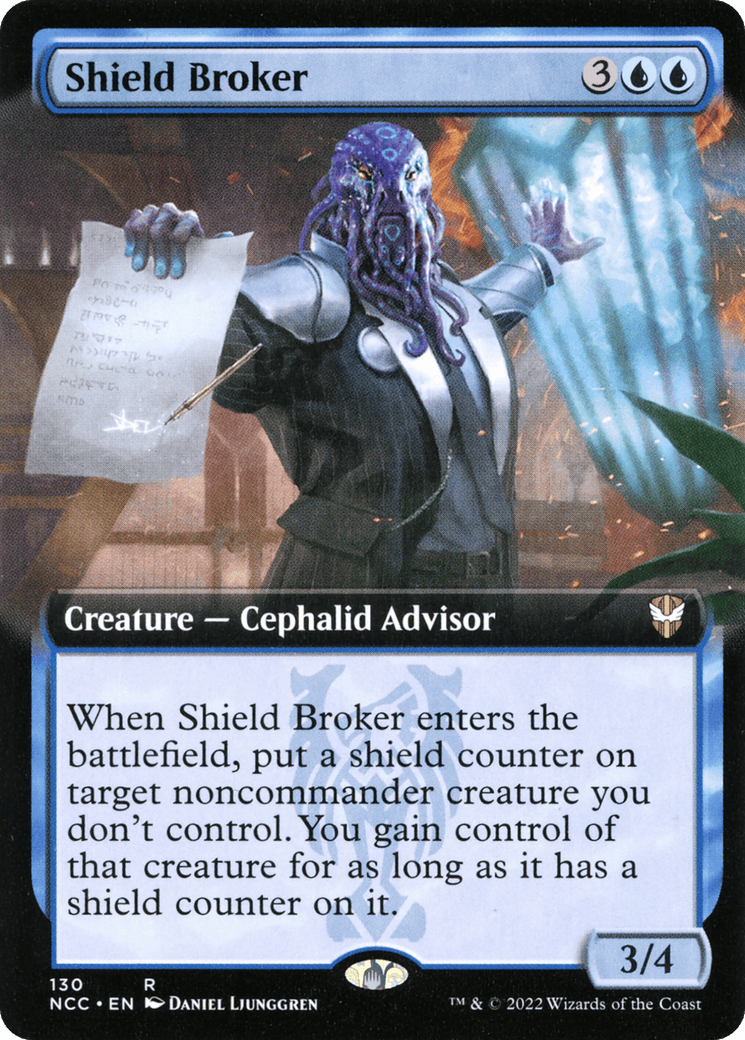 When this creature enters, put a shield counter on target noncommander creature you don’t control. You gain control of that creature for as long as it has a shield counter on it. (If it would be dealt damage or destroyed, remove a shield counter from it i