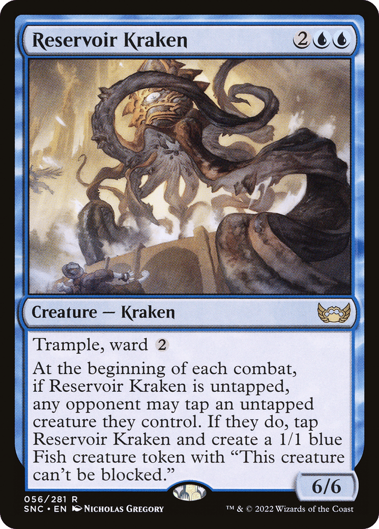 At the beginning of each combat, if this creature is untapped, any opponent may tap an untapped creature they control. If they do, tap this creature and create a 1/1 blue Fish creature token with “This token can’t be blocked.”