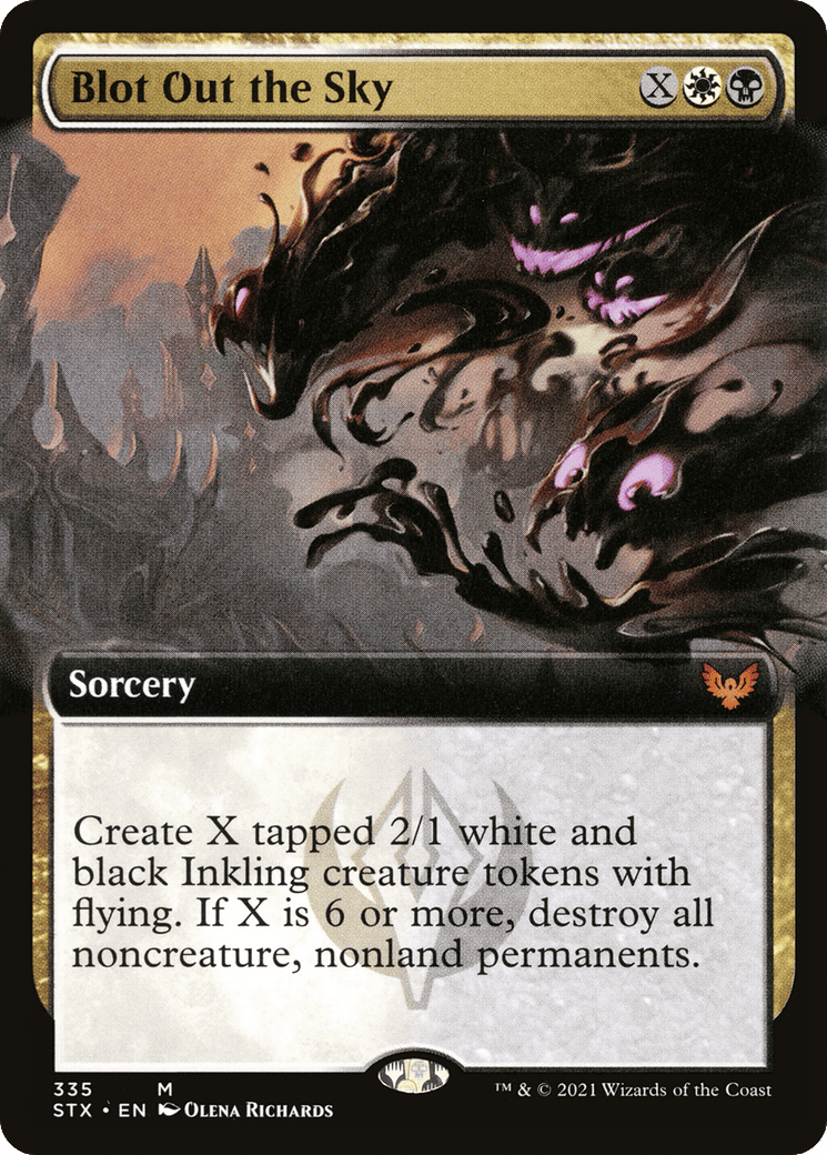 Create X tapped 2/1 white and black Inkling creature tokens with flying. If X is 6 or more, destroy all noncreature, nonland permanents.
