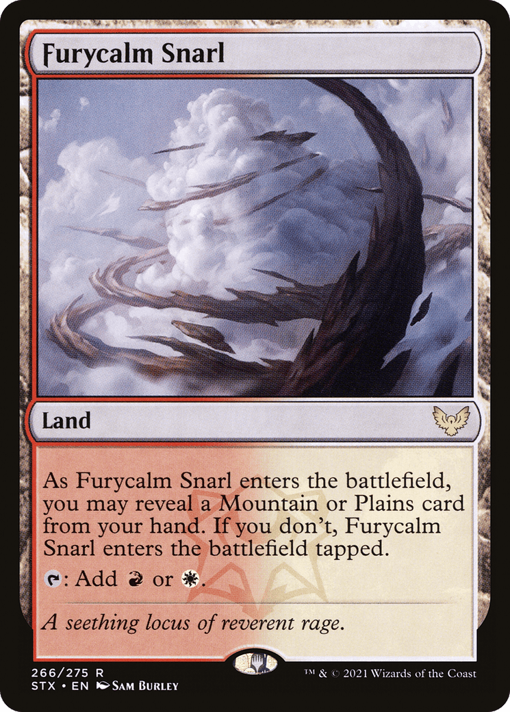 As this land enters, you may reveal a Mountain or Plains card from your hand. If you don’t, this land enters tapped. {T}: Add {R} or {W}.