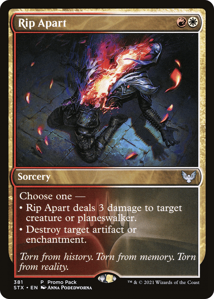 – Rip Apart deals 3 damage to target creature or planeswalker.