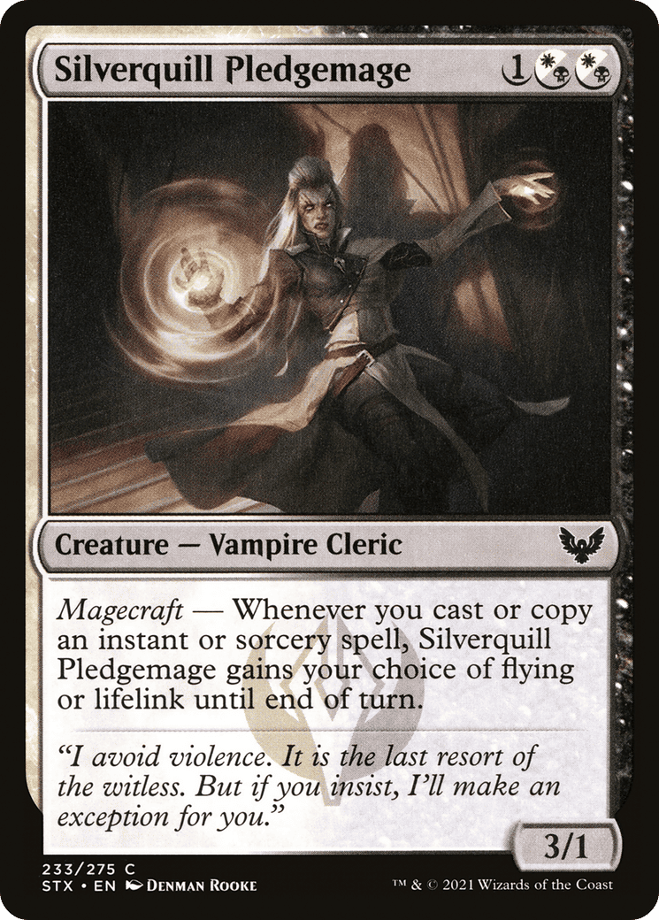 Magecraft – Whenever you cast or copy an instant or sorcery spell, this creature gains your choice of flying or lifelink until end of turn.