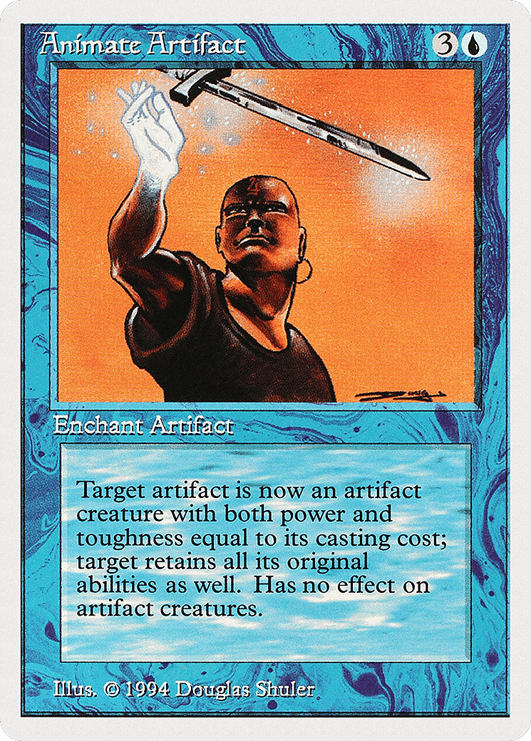 Enchant artifact As long as enchanted artifact isn’t a creature, it’s an artifact creature with power and toughness each equal to its mana value.