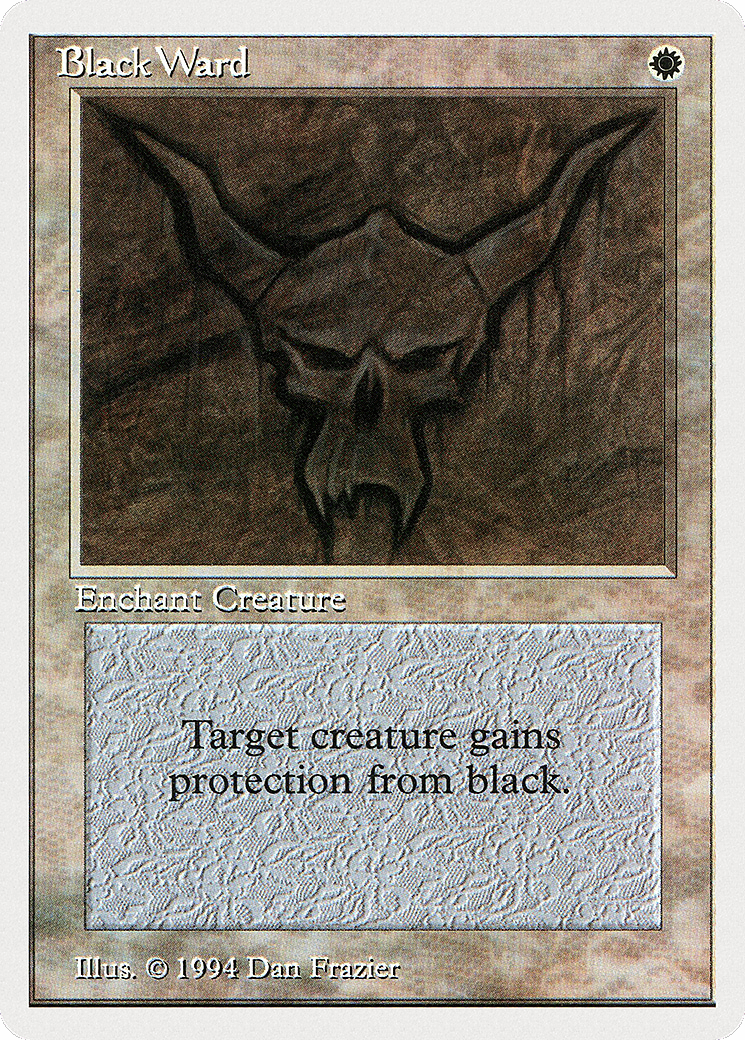 Enchant creature Enchanted creature has protection from black. This effect doesn’t remove this Aura.