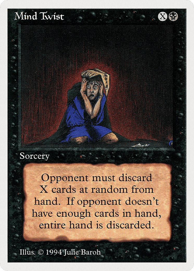Target player discards X cards at random.