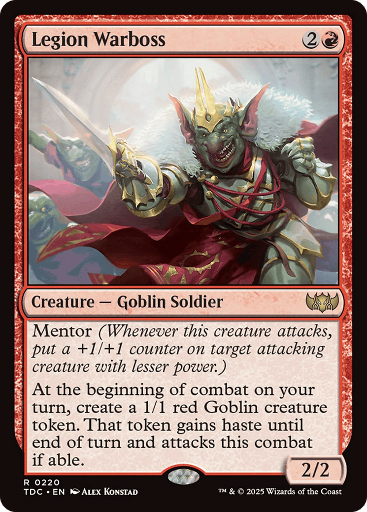 At the beginning of combat on your turn, create a 1/1 red Goblin creature token. That token gains haste until end of turn and attacks this combat