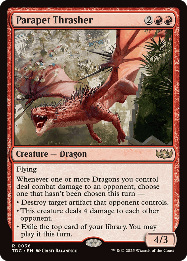 Whenever one or more Dragons you control deal combat damage to an opponent, choose one that hasn’t been chosen this turn –