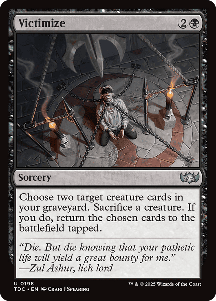 Choose two target creature cards in your graveyard. Sacrifice a creature. If you do, return the chosen cards to the battlefield tapped.