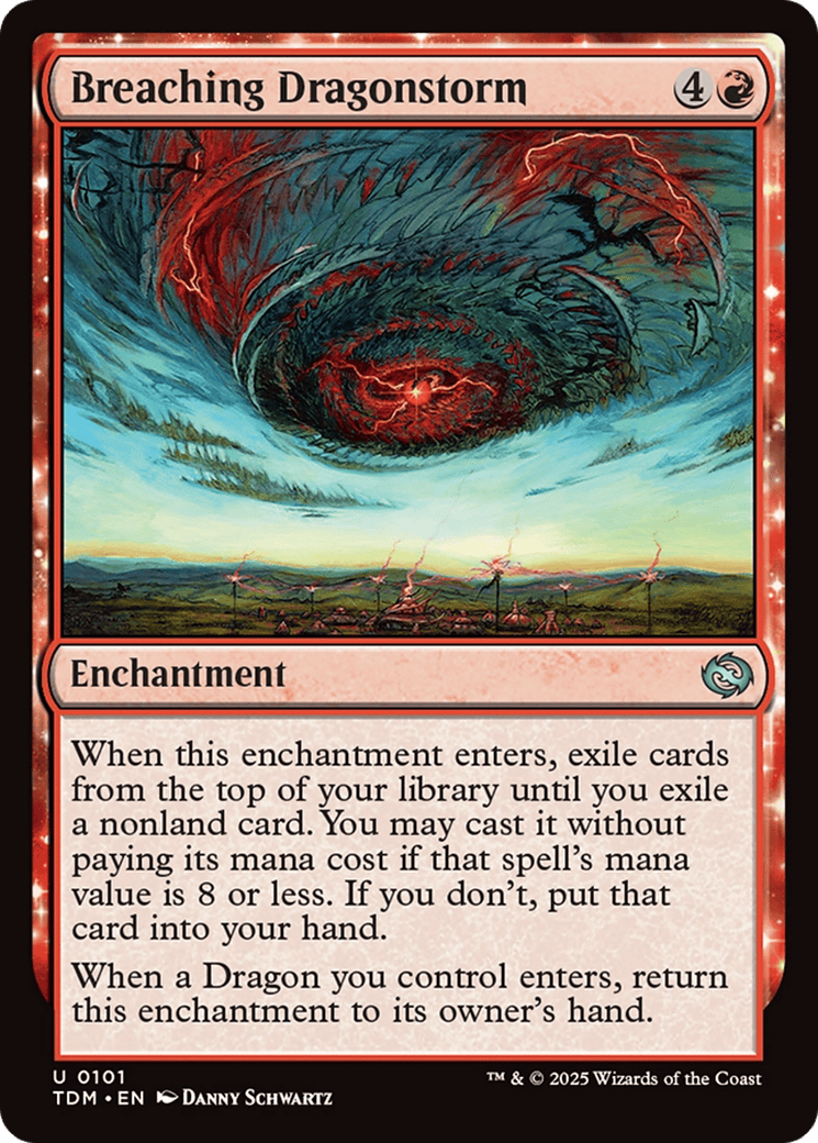 When this enchantment enters, exile cards from the top of your library until you exile a nonland card. You may cast it without paying its mana cost if that spell’s mana value is 8 or less. If you don’t, put that card into your hand.