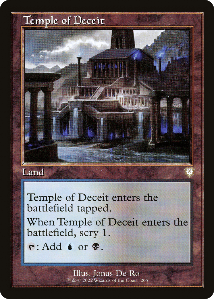 This land enters tapped. When this land enters, scry 1. (Look at the top card of your library. You may put that card on the bottom.) {T}: Add {U} or {B}.
