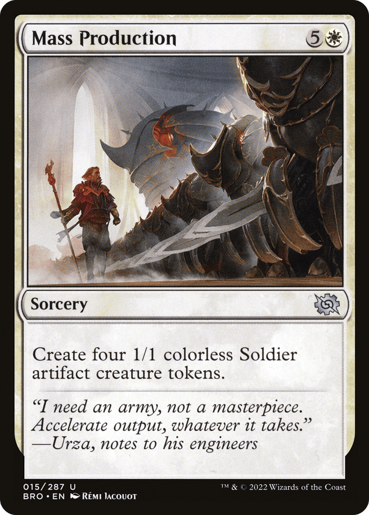 Create four 1/1 colorless Soldier artifact creature tokens.