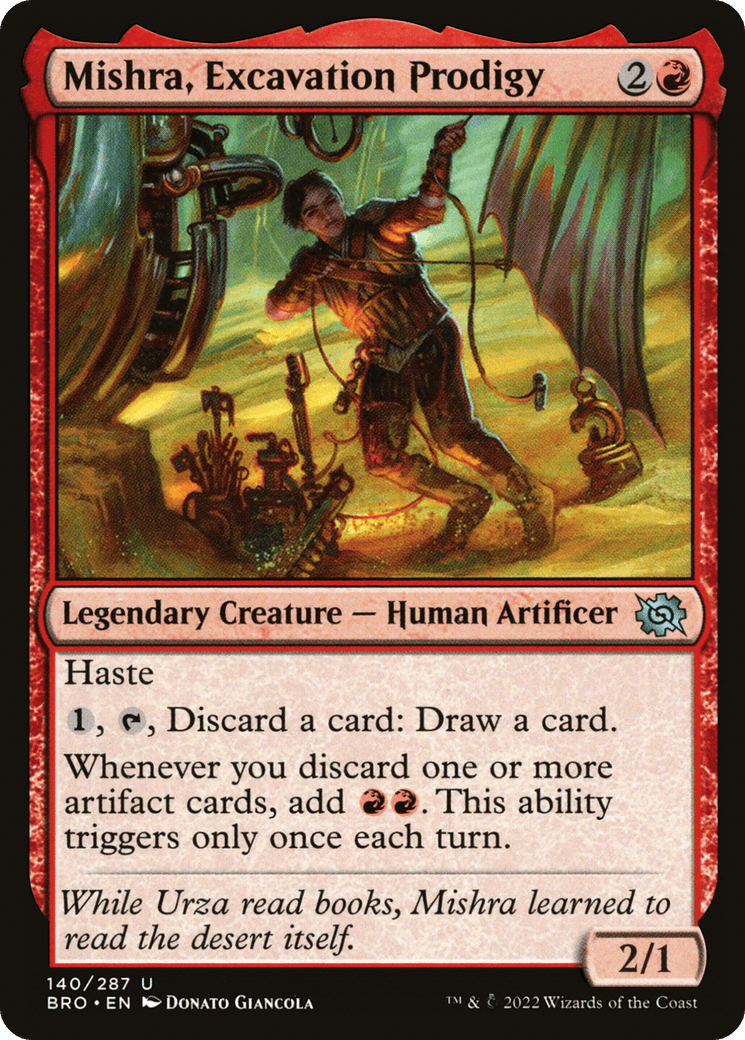 Whenever you discard one or more artifact cards, add {R}{R}. This ability triggers only once each turn.