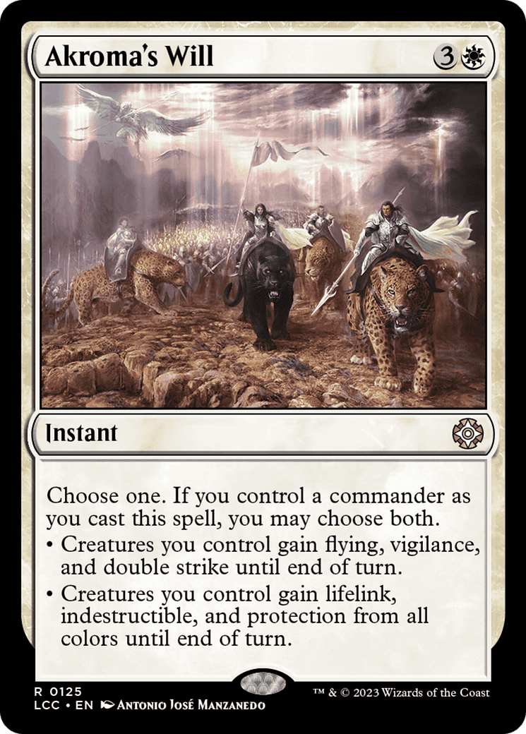 – Creatures you control gain flying, vigilance, and double strike until end of turn.