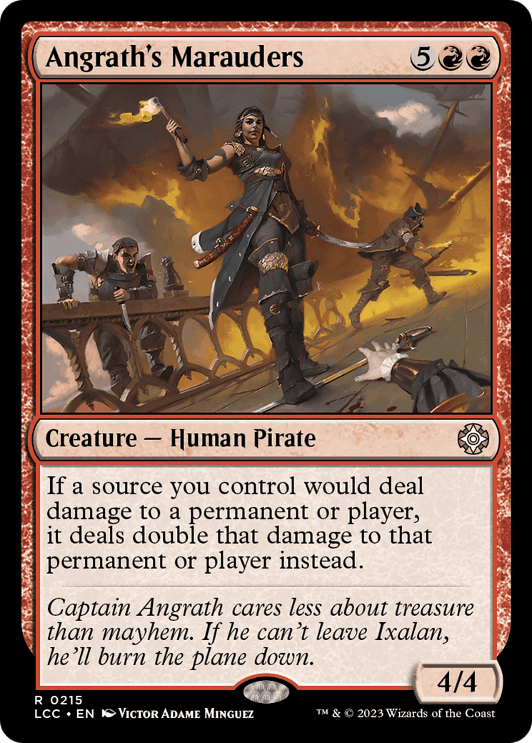 Captain Angrath cares less about treasure than mayhem. If he can’t leave Ixalan, he’ll burn the plane down.