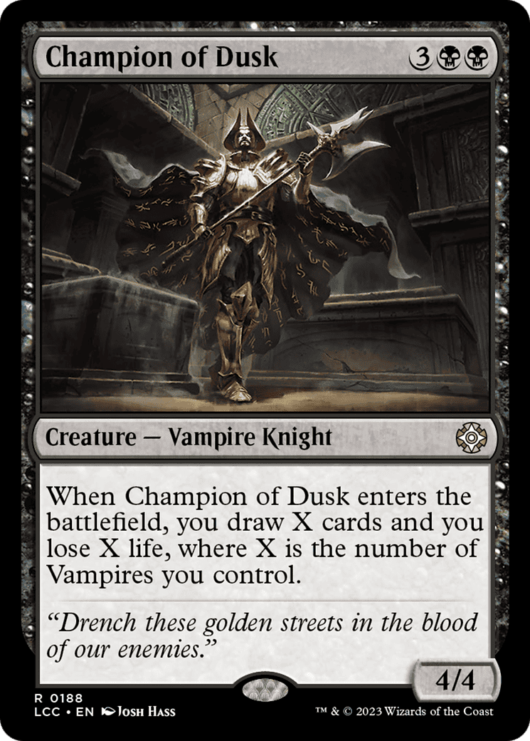 When this creature enters, you draw X cards and you lose X life, where X is the number of Vampires you control.