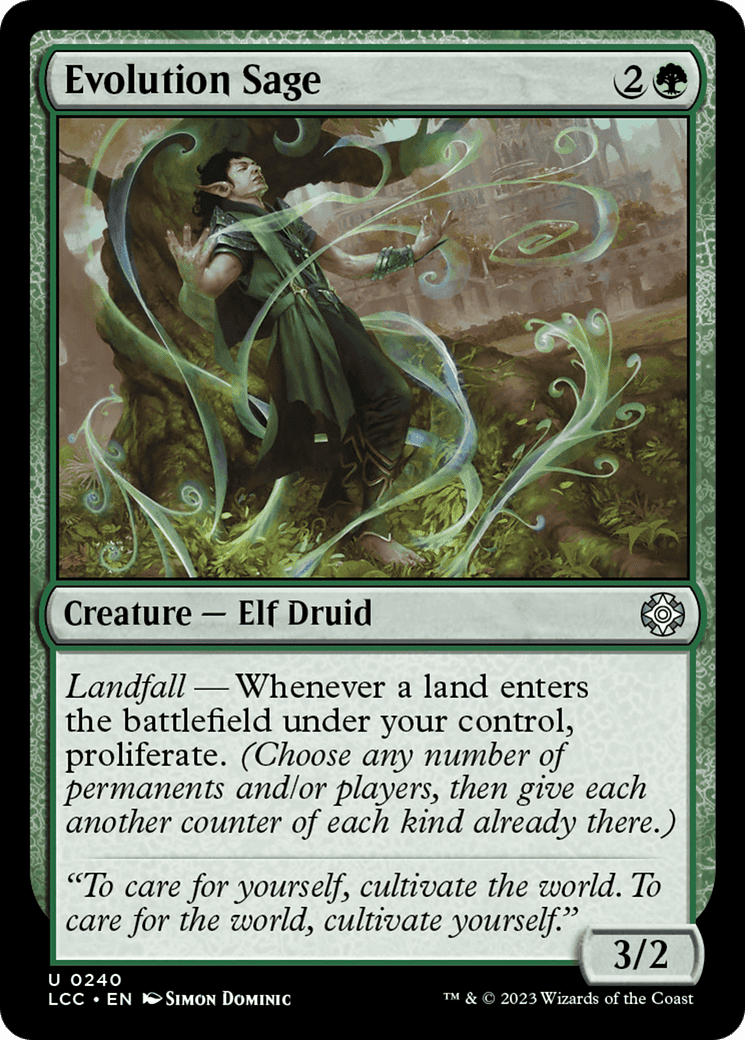 Landfall – Whenever a land you control enters, proliferate. (Choose any number of permanents and/or players, then give each another counter of each kind already there.)