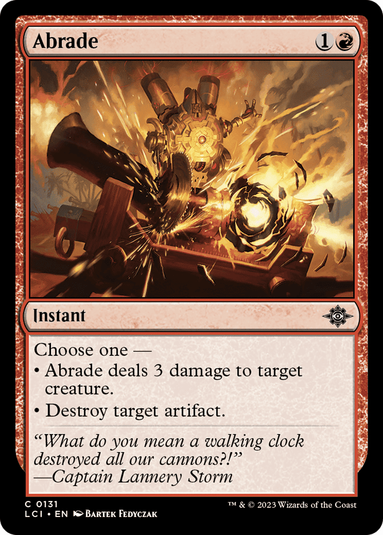 – Abrade deals 3 damage to target creature.