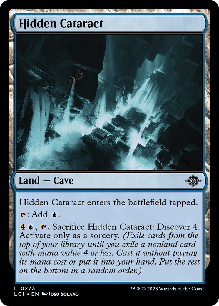 {4}{U}, {T}, Sacrifice this land: Discover 4. Activate only as a sorcery. (Exile cards from the top of your library until you exile a nonland card with mana value 4 or less. Cast it without paying its mana cost or pu