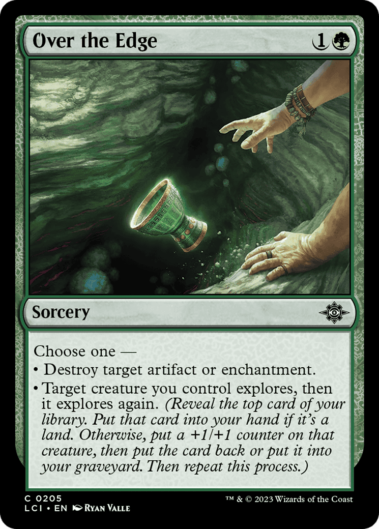 – Target creature you control explores, then it explores again. (Reveal the top card of your library. Put that card into your hand if it’s a land. Otherwise, put a +1/+1 counter on that creature, then