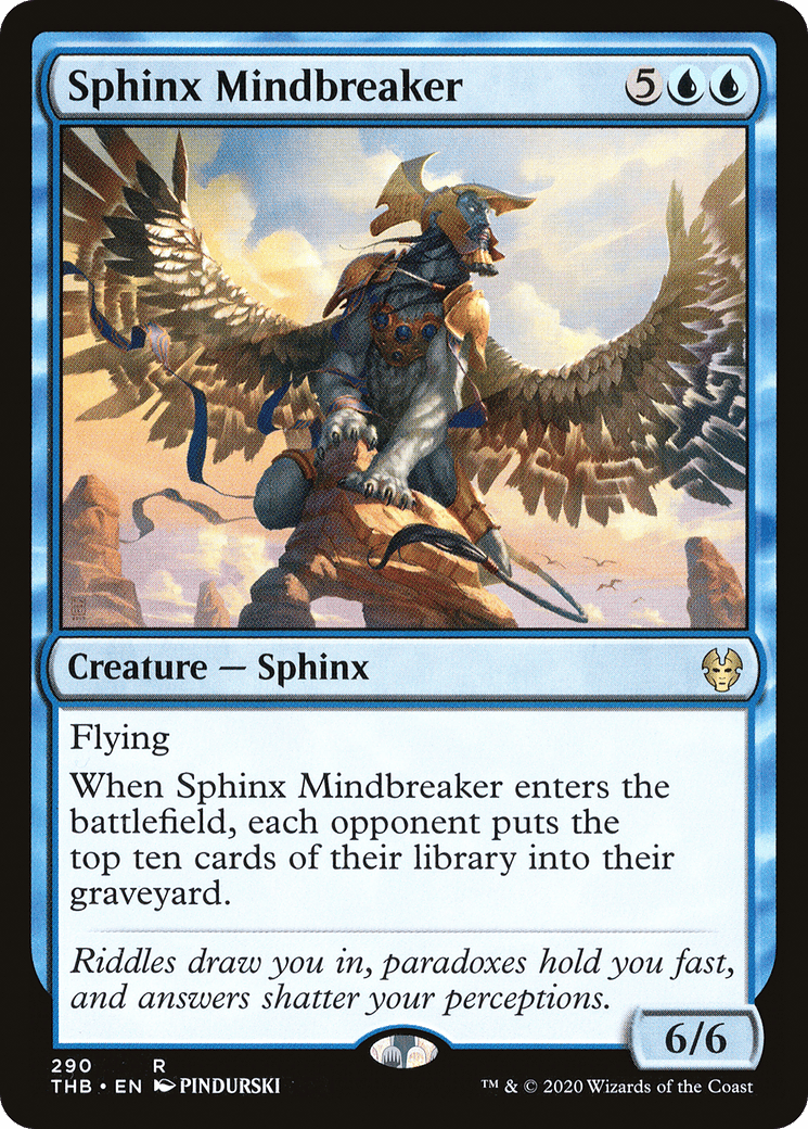 Flying When this creature enters, each opponent mills ten cards.