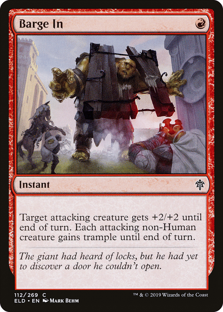 Target attacking creature gets +2/+2 until end of turn. Each attacking non-Human creature gains trample until end of turn.