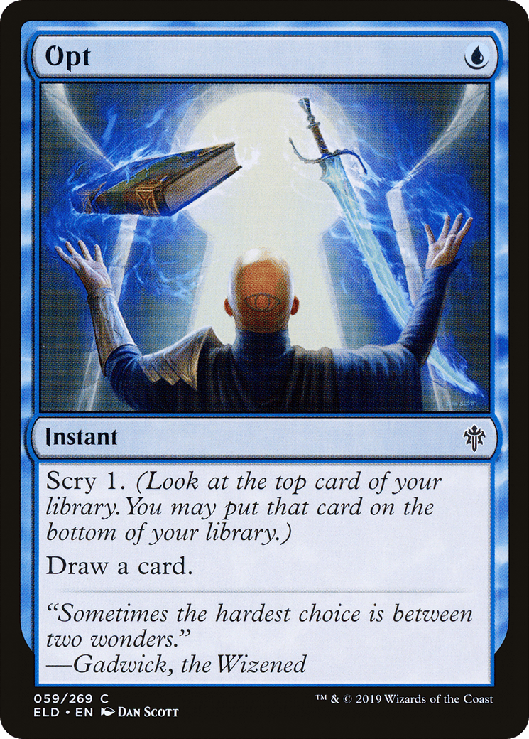 Scry 1. (Look at the top card of your library. You may put that card on the bottom.) Draw a card.