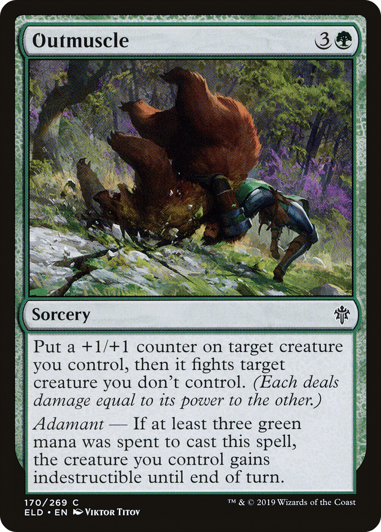 Put a +1/+1 counter on target creature you control, then it fights target creature you don’t control. (Each deals damage equal to its power to the other.)