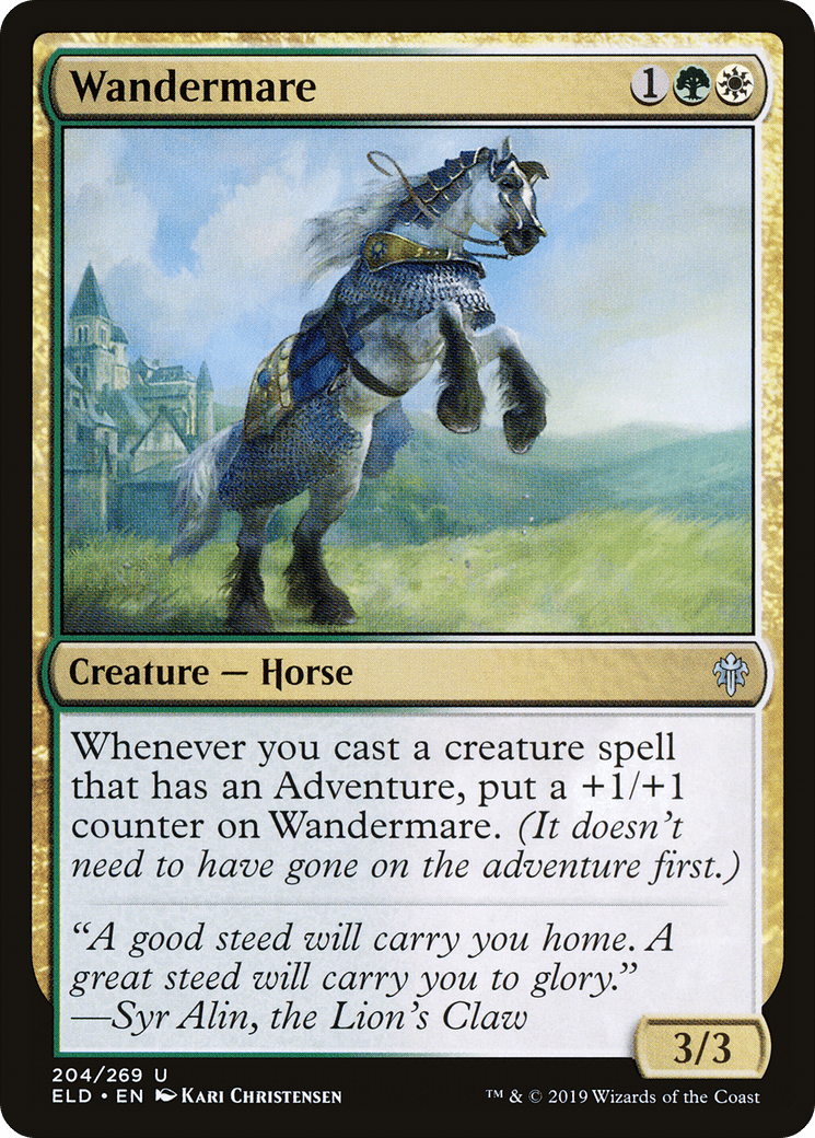 Whenever you cast a creature spell that has an Adventure, put a +1/+1 counter on this creature. (It doesn’t need to have gone on the adventure first.)