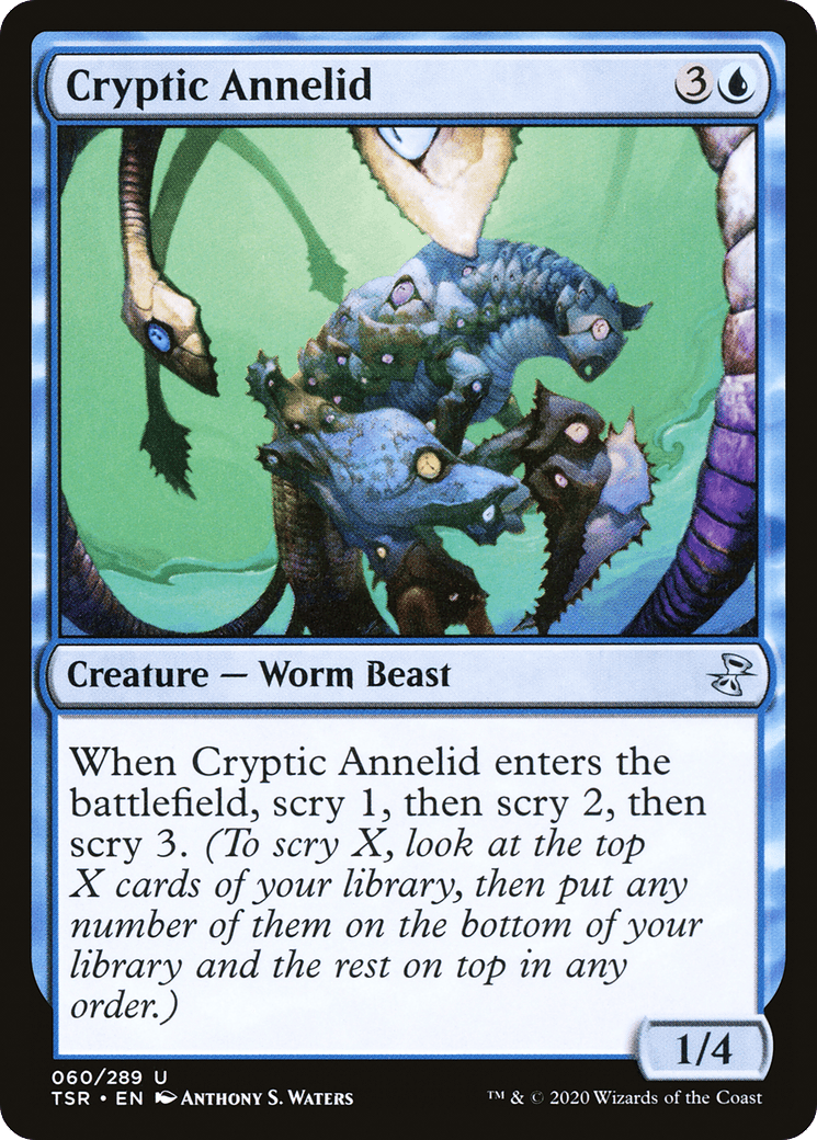 When this creature enters, scry 1, then scry 2, then scry 3. (To scry X, look at the top X cards of your library, then put any number of them on the bottom and the rest on top in any order.)