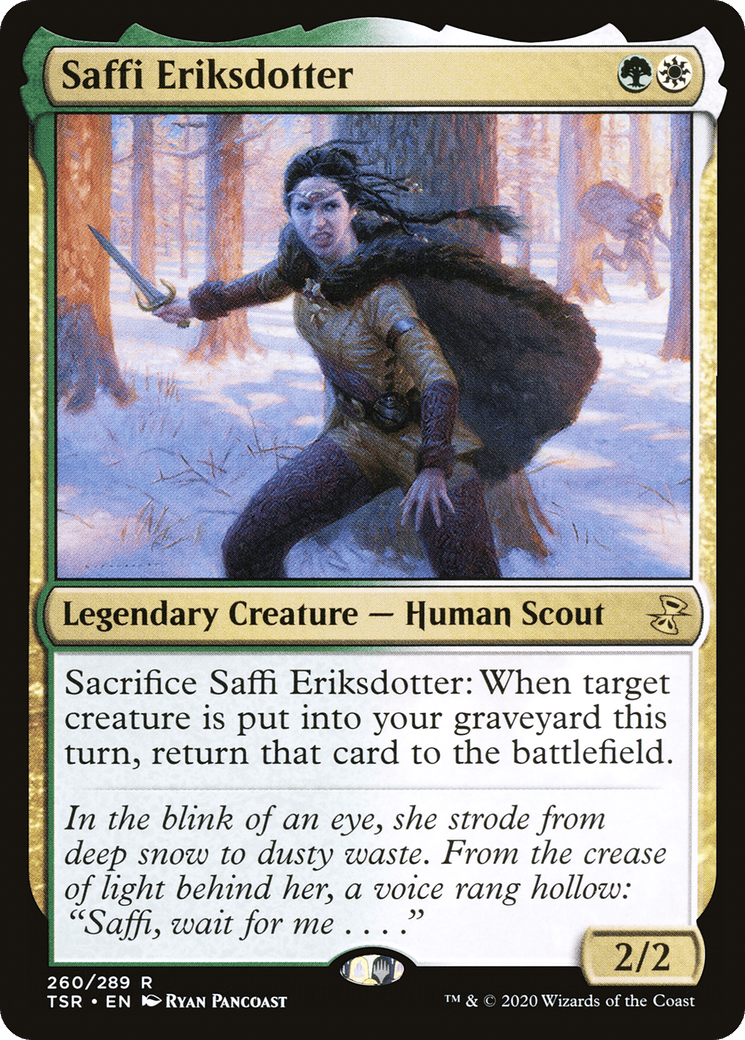 Sacrifice Saffi Eriksdotter: When target creature is put into your graveyard this turn, return that card to the battlefield.