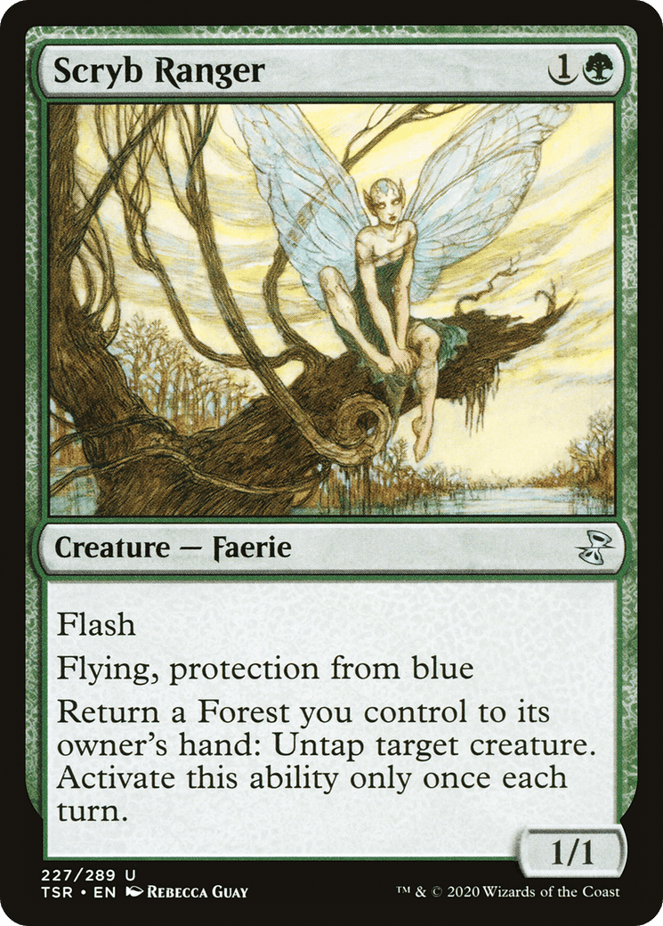 Flash Flying, protection from blue Return a Forest you control to its owner’s hand: Untap target creature. Activate only once each turn.