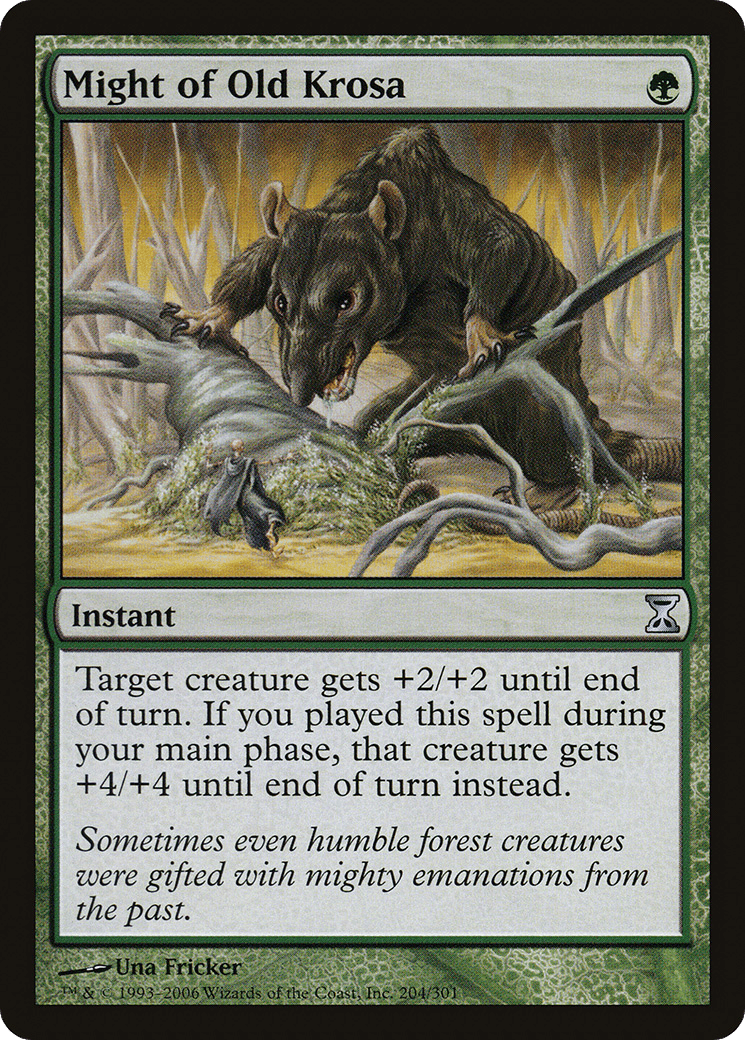 Target creature gets +2/+2 until end of turn. If you cast this spell during your main phase, that creature gets +4/+4 until end of turn instead.