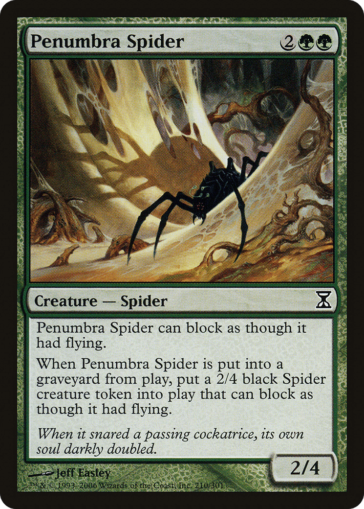 Reach When this creature dies, create a 2/4 black Spider creature token with reach.