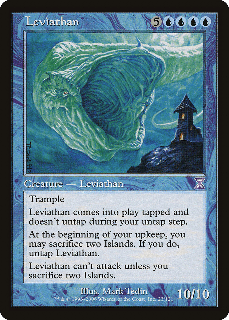 This creature can’t attack unless you sacrifice two Islands. (This cost is paid a