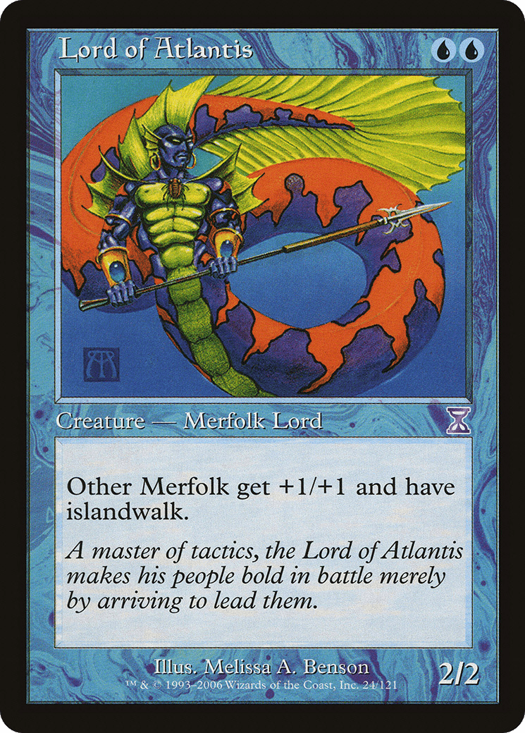 Other Merfolk get +1/+1 and have islandwalk. (They can’t be blocked as long as defending player controls an Island.)