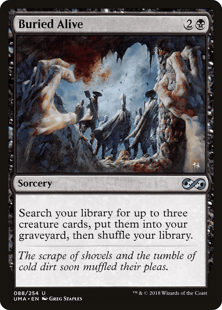 Search your library for up to three creature cards, put them into your graveyard, then shuffle.