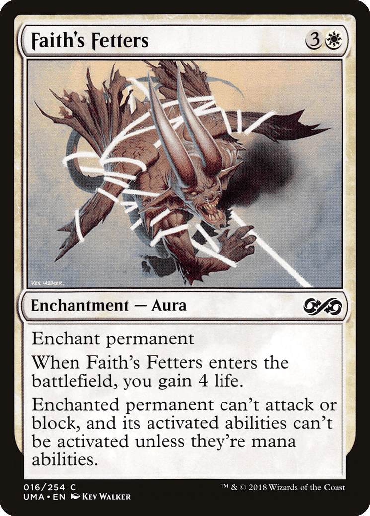 Enchanted permanent can’t attack or block, and its activated abilities can’t be activated unless they’re mana abilities.