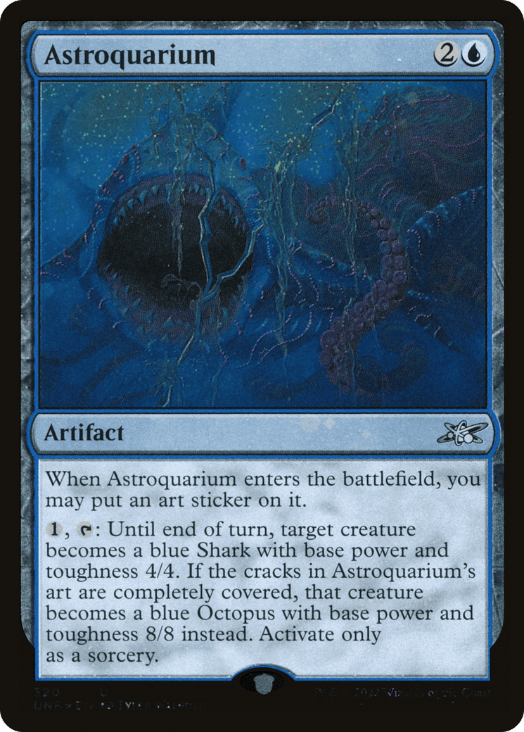 {1}, {T}: Until end of turn, target creature becomes a blue Shark with base power and toughness 4/4. If the cracks in this artifact’s art are completely covered, that creature becomes a blue Oct