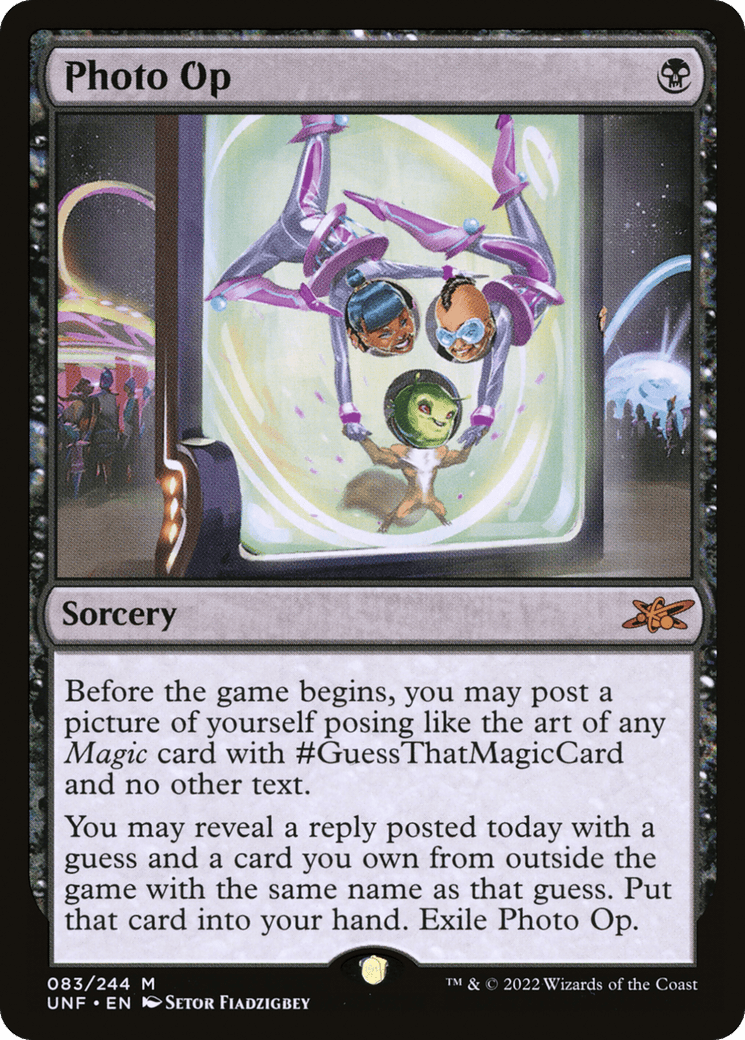Before the game begins, you may post a picture of yourself posing like the art of any Magic card with #GuessThatMagicCard and no other text.