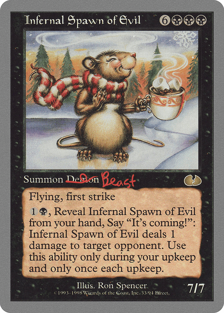 {1}{B}, Reveal this card from your hand, Say “It’s coming”: This card deals 1 damage to target opponent or planeswalker. Activate only during your upkeep and only once each turn.