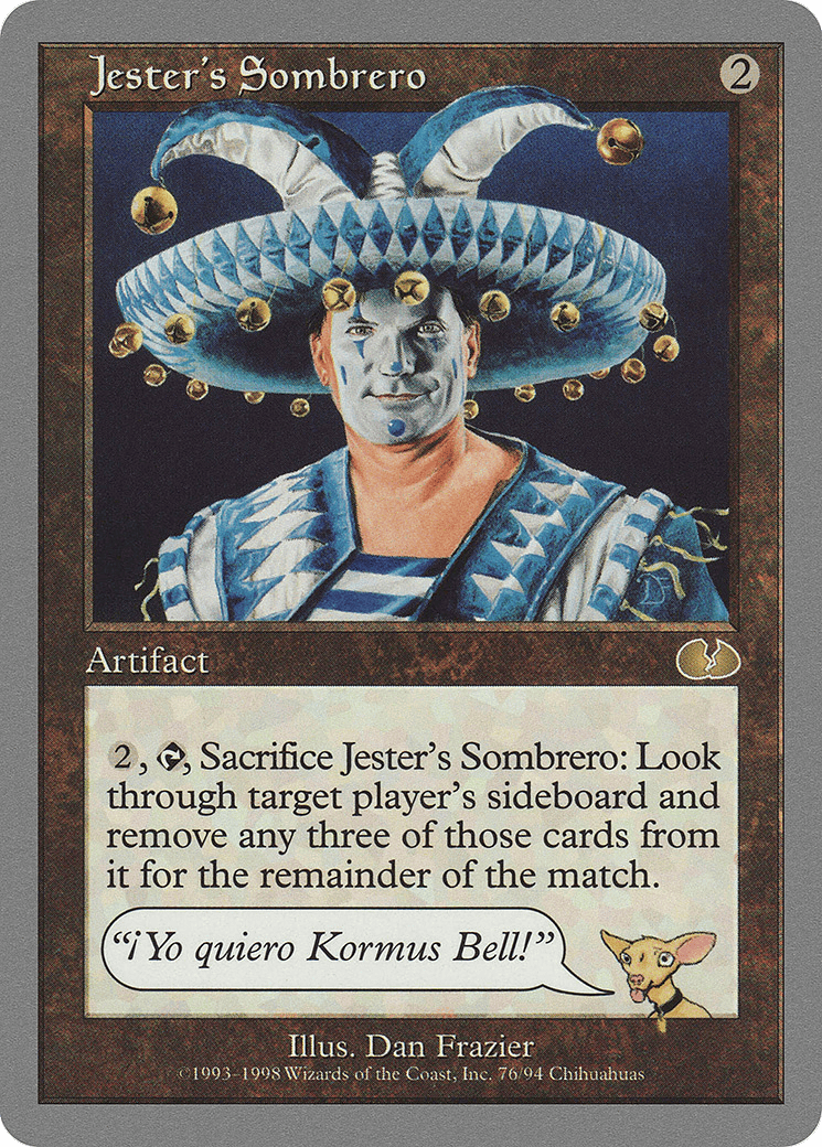 {2}, {T}, Sacrifice this artifact: Look at target player’s sideboard, choose three cards from it, and remove those cards from the match.
