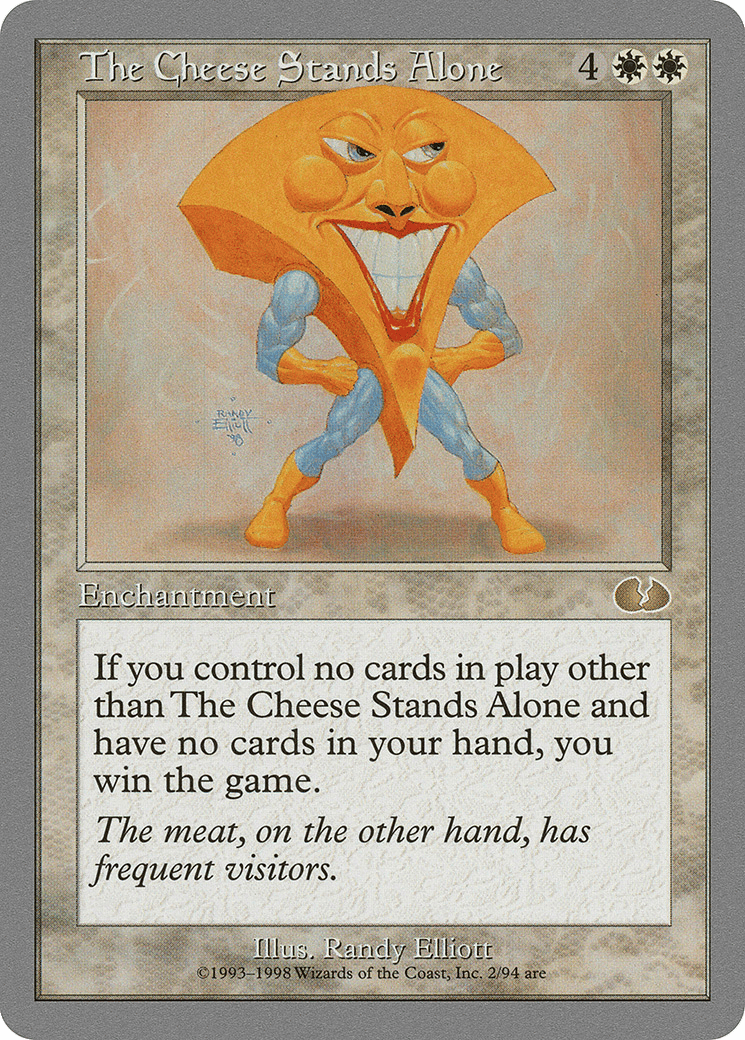 When you control no permanents other than The Cheese Stands Alone and have no cards in hand, you win the game.