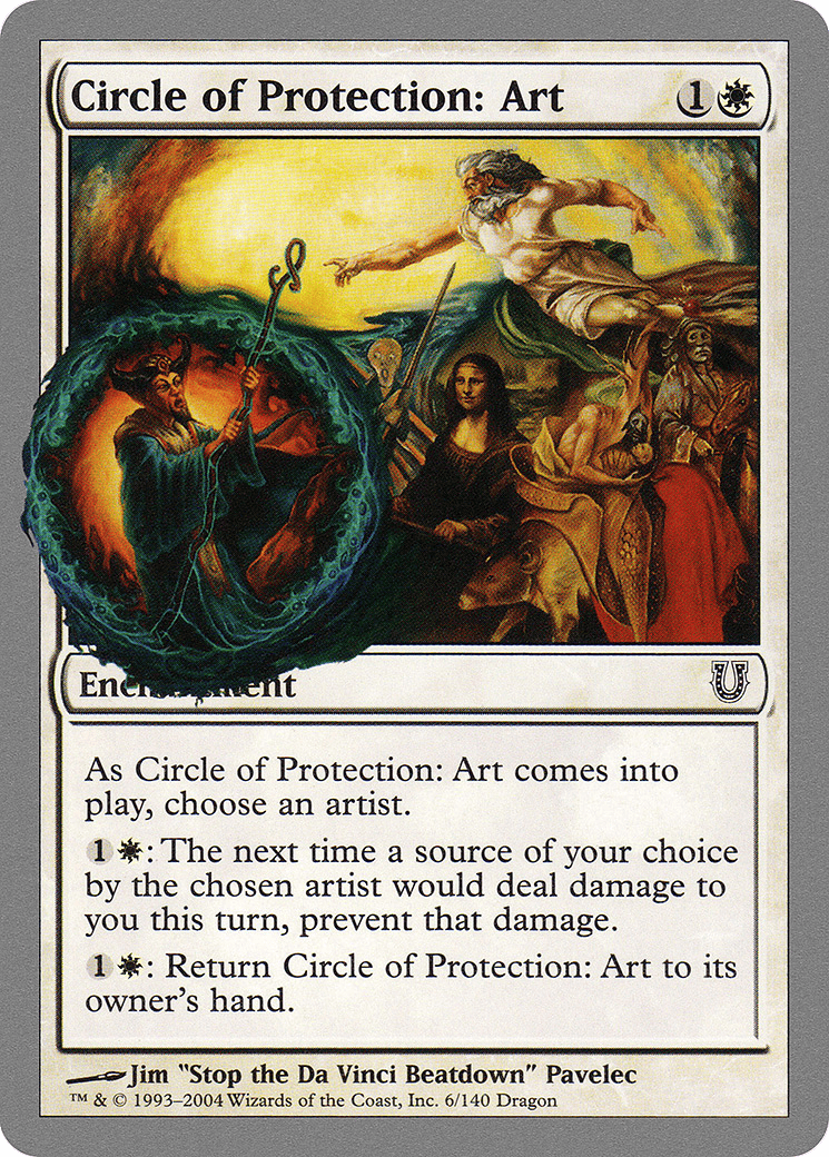 {1}{W}: The next time a source of your choice with art by the chosen artist would deal damage to you this turn, prevent that damage.