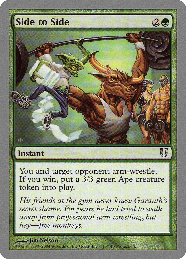 You and target opponent arm-wrestle. If you win, create a 3/3 green Ape creature token.